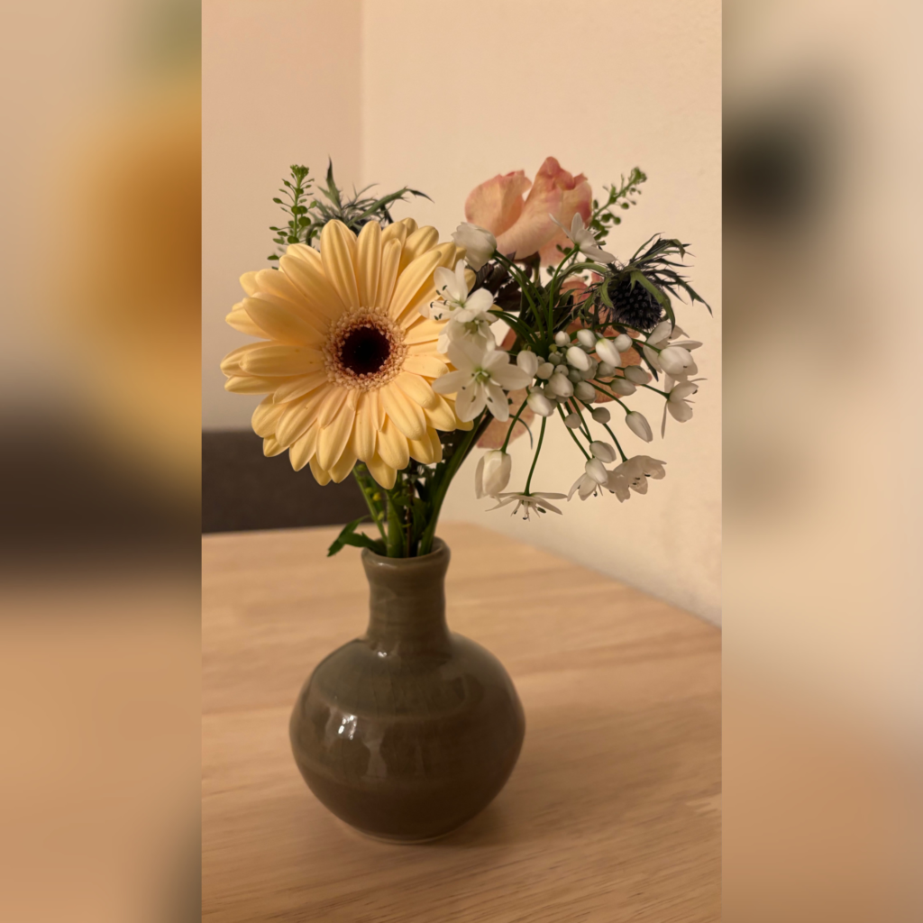 初めて作った花瓶が家にやってきたので、お花を飾ってみました❁